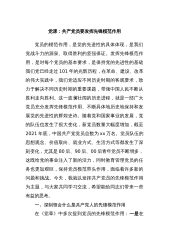 党课:厚植廉洁文化建设清廉国企助推国有企业高质量发展同志们:习近平总书记在党的二十大报告中指出:“加强新时代廉洁文化建设,教育引导广大党员、干部增强不想腐的自觉,清清白白做人、干干净净做事,使严厉惩治、规范权力、教育引导紧密结合、协调联动,不断取得更多制度性成果和更大治理效能。”新时代廉洁文化建设,是一体推进不敢腐、不能腐、不想腐的基础性工程,是我们党的自我革命的重要内容。国有企业学习贯彻党的二十大精神,要与深入学习贯彻习近平总书记关于加强新时代廉洁文化建设的一系列重要论述相结合,把廉洁文化建设纳入党风廉政建设和反腐败工作布局来统筹谋划,推动新时代国企廉洁文化建设实起来、强起来,为国企高质量发...