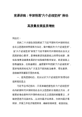 党课讲稿:学深悟透“六个必须坚持” 推动高质量发展提质增效
