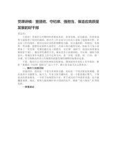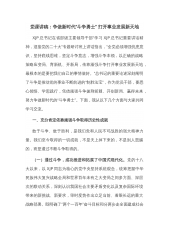 党课讲稿:重团结、守纪律、强担当,做适应高质量发展的好干部同志们:大家好!目前市公司整体经营情况良好,业务发展、队伍建设、经营效益等方面取得了较好的成绩,刚才在工作总结中已经向大家做了通报和分析。在总结工作的同时,我们还是应该保持清醒的头脑,结合遇到的一些情况、发现的一些问题,我想有必要和大家进行一次深入的沟通和交流,因此专门为大家准备了一堂党课,党课的题目是《重团结守纪律强担当做适应高质量发展的好干部》,通过讲党课的方式,强化党员干部重团结、守纪律、强担当的意识,明确自身作风建设上的不足和方向,进一步统一思想、统一行动、统一步调,有力的推动各项工作朝着高质量发展的预期目标稳步迈进。...