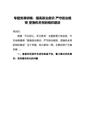 作示范勇争先,全力推动高新区高质量发展——在机关党支部专题党课上的讲稿同志们:习近平总书记强调,“好学才能上进。中国共产党人依靠学习走到今天,也必然要依靠学习走向未来。”重视学习、善于学习,是我们党的优良传统,对干部进行理论和党性教育,是我们党加强自身建设的宝贵经验。今天我以“作示范、勇争先,全力推动高新区高质量发展”为题,从“锻造坚定的政治品格、永葆清廉的政治本色、创造一流的发展实绩”3个方面与同志们交流几点体会。一、坚定信念,锻造过硬的政治品格古话说“相由心生”。对于共产党人来说,这个“心”就是理想信念。党员干部只有理想信念坚定了,站位才能高,方向才能明,心胸才能宽,担当才能强,才能做到“...