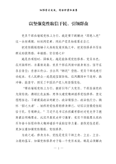 以学铸魂、以学增智、以学正风、以学促干学习心得体会(3篇) “学思想、强党性、重实践、建新功——省直机关青年学习贯彻习近平新时代中国特色社会主义思想主题教育交流活动”在汉举行。省直机关青年党员干部职工代表分享以学铸魂、以学增智、以学正风、以学促干的心得体会。交流活动中,来自华中科技大学和华中农业大学的专家学者,为省直机关青年党员干部职工代表带来微党课。来自省委政法委、省科学技术厅、同济医院、中国科学院武汉病毒研究所等近20家单位的青年党员代表先后登台,以现场交流、情景讲述、典型分享等各具特色的方式,交流他们立足岗位,在凝心铸魂筑牢根本、锤炼品格强化忠诚、实干担当促进发展、践行宗旨为民造福、廉...
