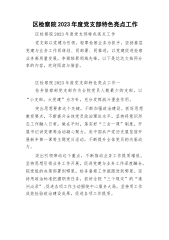 区检察院2023年度党支部特色亮点工作区检察院2023年度党支部特色亮点工作党支部以党建为引领,轻罪检察业务为抓手,坚持基层党建与业务工作同谋划、同部署、同推进,以党建促进检察业务高质量发展,争做轻罪领域先锋。以下是达达文档网分享的内容,欢迎阅读与借鉴。区检察院2023年度党支部特色亮点工作一检务督察部党支部作为全院党员人数最少的支部,以“小支部,大党建”为方针,充分发挥战斗堡垒作用。突出思想要素这个关键,不断加强政治建设。抓好思想教育要点,不断提升全体党员政治理论水平。坚持将意识形态工作融入日常,做在平时,落实好“三会一课”制度,开展书记讲党课等活动凝心聚力,赴中国共产党历史展览馆开展新年第...