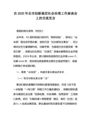 在2025年全市创新基层社会治理工作座谈会上的交流发言