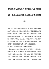研讨发言:依法全力保护妇女儿童合法权益,多措并举实现青少年普法教育全面覆盖