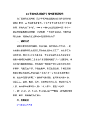 xx市妇女思想政治引领专题调研报告为了贯彻落实省妇联《关于开展妇女思想政治引领专题调研的通知》要求,xx市妇联高度重视,快速在全市妇联系统进行了支配部署,并将此项工作纳入20xx年“巾帼心向党礼赞新中国”“十个一”群众性宣扬教育活动打算,经过为期一个月的专题调研,按期完成既定任务,现就有关状况形成专题调研报告如下:一、调研方式调研主要实行实地调研、座谈沟通、抽样调研三种方式。一是市妇联主要领导带队先后深入部分妇女领办社区工厂、妇女手工专业合作社、村(社区)妇女儿童之家、市女企业家协会会员企业等女性集中领域实地调研:二是借助开展“国际家庭日”“六一”主题活动、承办全省巾帼脱贫现场会、举办每月一期...