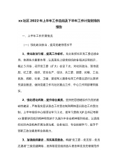 xx社区2022年上半年工作总结及下半年工作计划安排的报告