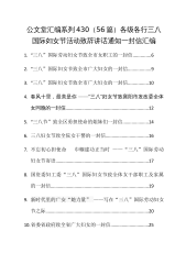 公文堂汇编系列430(56篇)各级各行三八国际妇女节活动致辞讲话通知一封信汇编三八”国际劳动妇女节致全市女职工的一封信三八”国际妇女节致全市广大妇女的一封信三八”国际妇女节致全市广大妇女的一封信春风十里,最美是你——“三八”妇女节致襄阳市发改委全体女同胞的一封信三八节”致全区勇担使命的姐妹们一封信...