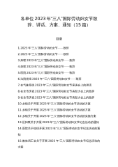 各单位2023年“三八”国际劳动妇女节致辞、讲话、方案、通知(15篇)