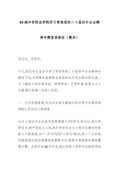 XX城市学院法学院学习贯彻党的二十届四中全会精神专题宣讲报告(精品)同志们、同学们:今天,我们在这里召开学习贯彻党的二十届四中全会精神专题学习会,非常荣幸能够跟法学院的各位师生面对面交流。为了确保大家听得进去、学得明白、记得牢固,我想从七个方面,跟大家做一次深入交流。一、从历史维度看,这次全会标志着我们党对现代化建设规律的认识达到了新高度为什么说这次全会具有里程碑意义?同学们,同志们,我们回顾历史,新中国成立以来,我们党在社会主义现代化建设的道路上不断探索,从"一五"计划到"十四五"规划,每一个五年规划都是我们党治国理政的重要方式,都是引领国家发展的重要引擎。改革开放40多年来,我们创造了世所...