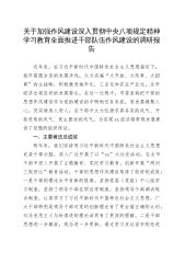 关于加强作风建设深入贯彻中央八项规定精神学习教育全面推进干部队伍作风建设的调研报告近年来,在习近平新时代中国特色社会主义思想指引下,我市紧跟全省的发展步伐,大力实施“大开放、大改革、大招商”的主战略,积极推进城市化、工业化和农业产业化,全市经济出现良好的发展势头。在这一过程中,市委坚持把干部的思想作风建设作为党的建设的中啊哟任务来抓,用发展凝聚人心,凭实绩选人用人,在干部中大力弘扬求真务实的风气、开拓进取的风气、民主团结的风气,为实现xx经济超常规发展提供了坚强的组织保证。一、主要做法及成效两年来,我们坚持用习近平新时代中国特色社会主义思想武装干部头脑,深入广泛开展了以“xx”大讨论活动,在全...