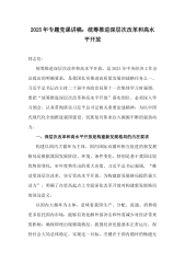 2025年专题党课讲稿2篇范文:党员干部要在学习贯彻全会精神中发挥示范带头作用2025年第一季度专题党课讲稿进一步全面深化改革必须坚持党的全面领导党的二十届三中全会吹响了以进一步全面深化改革开辟中国式现代化广阔前景的时代号角。全会提出进一步全面深化改革的重大原则,排在首位的就是“坚持党的全面领导”。全会通过的《中共中央关于进一步全面深化改革、推进中国式现代化的决定》(以下简称《决定》),立足当前实际和未来发展,就加强党对改革的领导进行系统部署,强调党的领导是进一步全面深化改革、推进中国式现代化的根本保证。这是对改革开放以来特别是新时代全面深化改革宝贵经验的科学总结,深刻揭示了我国改革开放成功推...