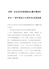 党课:农业农村发展面貌发生翻天覆地的变化——新中国成立75周年农业发展成就