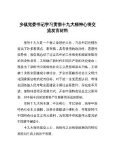 [心得体会]乡镇党委书记学习贯彻十九大精神心得交流发言材料