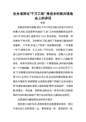 在全省深化“千万工程”推进乡村振兴现场会上的讲话车俊实施乡村振兴战略,是以XXX同志为核心的党中央作出的重大决策,也是新时代做好“三农”工作的新旗帜和总抓手。2003年,时任浙江省委书记XXX亲自谋划、亲自部署、亲自推动“千村示范、万村整治”工程,揭开了美丽浙江建设的宏伟篇章。15年来,全省上下坚持一张蓝图绘到底、一年接着一年干,锲而不舍、久久为功,“千村示范、万村整治”工程给浙江农村大地带来了全面深刻、影响深远、鼓舞人心的变化,为实现乡村全面振兴奠定了扎实基础。推动“八八战略”再深化、改革开放再出发,乡村是一个重要战场,乡村振兴战略是一个关键战略。我们要深入贯彻落实XXX总书记关于“三农”工...