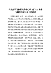 市委书记理论中心组学习发言材料---学习政治局第四十次集体学习时的重要讲话精神习近平总书记在中央政治局第四十次集体学习时的重要讲话,对提高一体推进不敢腐、不能腐、不想腐能力和水平作出了最新部署、提出了明确要求。《让群众过上好日子——习近平正定足迹》等四部图书,系统记述总书记地方工作经历,全面呈现了总书记领导和推动地方改革开放和现代化建设事业的施政实践。《习近平经济思想学习纲要》全方位展现了习近平经济思想严密的逻辑体系、丰富的思想内涵和重要的理论价值。对此,我们要全面系统学、及时跟进学,不断在学习中感悟思想伟力,提高能力本领,确保始终沿着总书记指引的方向前进,奋力走好新的“赶考”之路。一、自觉追...