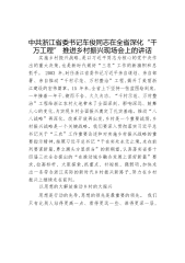 中共浙江省委书记车俊同志在全省深化“千万工程”推进乡村振兴现场会上的讲话实施乡村振兴战略,是以习近平同志为核心的党中央作出的重大决策,也是新时代做好“三农”工作的新旗帜和总抓手。2003年,时任浙江省委书记习近平亲自谋划、亲自部署、亲自推动“千村示范、万村整治”工程,揭开了美丽浙江建设的宏伟篇章。15年来,全省上下坚持一张蓝图绘到底、一年接着一年干,锲而不舍、久久为功,“千村示范、万村整治”工程给浙江农村大地带来了全面深刻、影响深远、鼓舞人心的变化,为实现乡村全面振兴奠定了扎实基础。推动“八八战略”再深化、改革开放再出发,乡村是一个重要战场,乡村振兴战略是一个关键战略。我们要深入贯彻落实习近平...