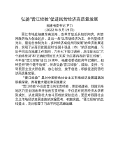 弘扬“晋江经验”促进民营经济高质量发展福建省委书记尹力(2022年8月19日)晋江市地处福建东南沿海,改革开放后从组织闲房、闲资闲散劳动力创业起步,走出一条“以市场经济为主、外向型经济为主、股份合作制为主,多种经济成份共同发展”的经济发展道路,实现了从落后贫困县到“全国十强县(市)”的历史跨越。习近平同志在福建工作期间,六年七下晋江调研,总结提出以“六个始终坚持”和“正确处理好五大关系”为主要内容的“晋江经验”。今年是“晋江经验”提出20周年。福建省委省政府牢记嘱托,始终坚持“两个毫不动摇”,传承弘扬“晋江经验”,鼓励、支持、引导民营企业大胆创新、放心创业、放手创造,积极促进民营经济高质量发展...