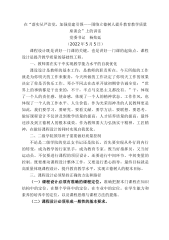 在“落实从严治党,加强党建引领——围绕立德树人提升教育教学质量座谈会”上的讲话党委书记杨兆廷(2022年5月5日)课程设计既是讲好一门课的关键,也是讲好一门课的起始点。课程设计是提升教学质量的基础性工程。一、教师要在实干中实现教学能力水平的自我优化课设设计是教师的基本工作,是教师的职责所在。今天所做的工作就是为你明天的工作来服务,今天所做的工作决定了你明天工作的效果决定了你是否快乐工作。邓小平同志在改革开放初期曾告诫全党:“世界上的事情都是干出来的,不干,半点马克思主义都没有。”干,体现了一个人的责任感、使命感,体现了一个人的精神状态、工作作风,也体现了一个人的工作水平、人生价值。作为光荣而神...