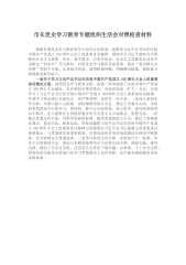 按照专题组织生活会要求,本人坚持以XJP新时代中国特色社会主义思想为指导,通过参加支部主题党日等集中学习和个人自学,认真研读了XJP总书记在党史学习教育动员大会上的重要讲话,XJP总书记“七一”重要讲话,XJP总书记关于海南工作的系列重要讲话、重要指示批示和XJP《论中国GC党历史》及《毛泽东、邓小平、江泽民、胡锦涛关于中国GC党历史论述摘编》《XJP新时代中国特色社会主义思想学习问答》《中国GC党简史》等中央指定学习、《中国GC党的100年》《中华人民共和国简史》《改革开放简史》《社会主义发展建设》等重要参考材料、学习教育八个方面的学习内容等和《党章》等党内法规条例。围绕“学党史、悟思想、办...
