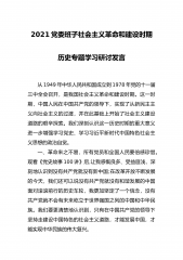 党委班子社会主义革命和建设时期历史专题学习研讨发言