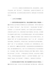 今年上半年,**集团公司党委坚持政治引领,落实党要管党、全面从严治党要求,树牢“四个意识”,严格落实制度,全面提升党支部组织力,强化党支部政治功能,充分发挥党支部战斗堡垒作用,确保党建工作各项任务落到实处。一、上半年工作开展情况(一)坚持把思想政治建设摆在首位,推动党委履职尽责能力不断提高。一是始终坚持以习近平新时代中国特色社会主义思想为指导,贯穿学习教育全过程,牢固树立“四个意识”,坚定“四个自信”,坚定坚决做到“两个维护”,认真贯彻“1+3+3+改革开放”发展理念,完善《党委中心组学习管理制度》,开展党委中心组学习5次,采取党委班子成员专题讲座、研讨交流、分享感悟等方式创新中心组学习形...