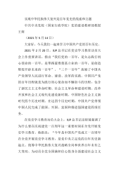 实现中华民族伟大复兴是百年党史的线索和主题中共中央党校(国家行政学院)党的建设教研部教授王莉(2021年5月14日)大家好,今天我们一起来学习中国共产党的百年历史。2021年2月20日,XJP总书记在党史学习教育动员大会上作重要讲话,指出“我们党的一百年,是矢志践行初心使命的一百年,是筚路蓝缕奠基立业的一百年,是创造辉煌开辟未来的一百年”。“三个一百年”浓缩了中国共产党领导人民进行革命、建设、改革的实践。中国共产党的百年历程就是为践行初心使命而不懈奋斗的历程,包含了新民主主义革命时期、社会主义革命和建设时期、改革开放和社会主义现代化建设新时期、中国特色社会主义新时代四个历史时期。在这四个历史时...