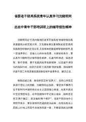 省委老干部局系统青年认真学习沈晓明同志在中青年干部培训班上的辅导报告精神