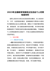 2023年主体教育专题民主生活会个人对照检查材料(20230820)