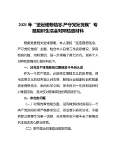 2021年“坚定理想信念,严守党纪党规”专题组织生活会对照检查材料