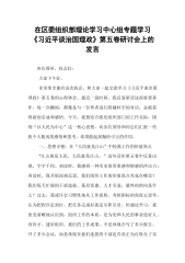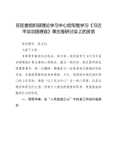 市委中心组学习《习近平经济文选》研讨发言 大家好。根据会议安排,我就学习《习近平经济文选》第一卷作个研讨发言。这次学习对我而言,是一次深刻的理论滋养和思想洗礼。文选中的一系列重要文稿,系统记录了新时代我国经济社会发展的壮阔历程和辉煌成就,更蕴含着指导我们未来发展的科学方法论。我的认识还很初步,借此机会,结合个人的一些思考,谈三点不成熟的心得体会,主要是向各位领导和同志们汇报学习过程中的一些感悟和反思,希望能得到大家的批评指正。一、在深学细悟中,校准高质量发展的“政绩观”过去很长一段时间,一谈到发展,我的第一反应可能还是速度、规模和总量。但通过反复研读《习近平经济文选》,我深刻体会到,习近平总书...