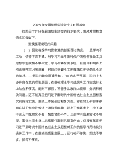 2023年专题组织生活会个人对照检查按照关于开好专题组织生活会的指示要求,现将对照检查情况汇报如下。一、查找梳理发现的问题(一)围绕检视学习贯彻党的创新理论情况。一是学习不主动,悟得不深不透。对学习习近平新时代中国特色社会主义思想学思践悟不够自觉,学习不够全面系统,在篇目和内容上有选择性学习的现象,对自己兴趣不大的领域存在钻劲儿不足的情况。二是学习融会贯通不够,“知”的水平不高。学习上大多停留在党的理论层面,在推动理论学习成果向工作实践转化上站位不够高、能力不够强,不善于从政治上观察、分析和解决问题,还不能真正把习近平新时代中国特色社会主义思想落实到指导实践、推动工作的全过程各方面。存在对工作...