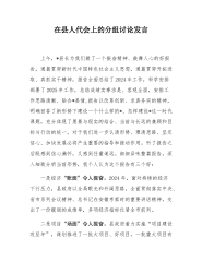 在县人代会上的分组讨论发言上午,*县长为我们做了一个振奋精神、鼓舞人心的好报告,通篇贯穿新时代中国特色社会主义思想,通篇贯穿开拓进取、真抓实干精神,报告全面总结了2024年工作,科学安排部署了2025年工作,总结成绩实事求是、客观全面,安排工作思路清晰、贴合*县情,报告以改革创新、求真务实的精神,明确回答了新形势下建设一个什么样的*、怎样建设*这一时代课题,充分体现了愿景与现实的结合、当前与长远的兼顾和目标与行动的统一,对于我们进一步认清形势、理清思路、坚定信心、加快发展必将产生重要的指导和推动作用。听了报告之后既感到信心满怀,又感到任重道远。细细品味整篇报告,深入细致分析当前形势,我个人认为...