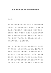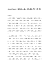 在XX局2025年度民主生活会上的总结讲话(精品)