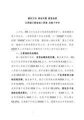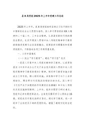 县X局党组2025年上半年党建工作总结2025年上半年,县X局党组始终坚持以习近平新时代中国特色社会主义思想为指导,深入学习贯彻党的XX大精神和二十届二中、三中全会精神,认真落实新时代党的建设总要求,扎实开展深入贯彻中央八项规定精神学习教育持续推进党建与业务深度融合,统筹抓好问题整改和党建质效提升,不断推动各项工作高质量发展。一、工作开展情况(一)突出“学习教育”,建设“学习型”机关一是深入开展中央八项规定精神学习教育。认真贯彻落实《中共中央办公厅关于在全党开展深入贯彻中央八项规定精神学习教育的通知》精神,制定学习教育实施方案成立工作专班,精心组织实施。采取集中学习与个人自学相结合、理论研讨与...