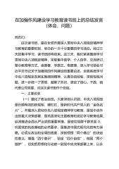 在加强作风建设学习教育读书班上的总结发言(体会、问题)同志们:这次读书班,是在全党开展深入贯彻中央八项规定精神学习教育的重要时刻,举办的一次十分重要的学习活动。经过三天的集中学习,读书班即将结束。这三天,我们紧紧围绕学习贯彻中央八项规定精神,采取集中领学、个人自学、交流研讨、警示教育等方式,读原著、学原文、悟原理,深入学习领会习近平总书记关于加强党的作风建设的重要论述,全面系统学习中央八项规定及其实施细则精神,认真总结经验、深刻检视问题,进一步统一了思想、凝聚了共识、坚定了信心。下面,我代表公司党委,对这次读书班作个总结。一、主要收获(一)强化了政治自觉。大家深刻认识到,中央八项规定是长期有效...