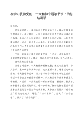 在县处级领导干部深入贯彻中央八项规定精神学习教育读书班结业式上的总结讲话同志们:为期三天的县处级领导干部深入贯彻中央八项规定精神学习教育读书班,在大家的共同努力下,圆满完成了各项学习任务。受县委书记X同志委托,我主持这次读书班并作结业讲话。首先,我代表县委,向省纪委监委有关负责同志的专题辅导表示衷心感谢!向参与组织、服务的同志们表示诚挚慰问!向各位学员的积极参与和辛勤付出表示充分肯定!这次读书班坚持以习近平新时代中国特色社会主义思想为指导,采取专题学习、专题辅导、个人自学、分组研讨、集中研讨相结合的形式,深入学习领会习近平总书记关于加强党的作风建设的重要论述和中央八项规定及其实施细则精神。大家...