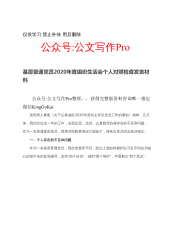 仅供学习禁止外传用后删除公众号:公文写作Pro基层普通党员2020年度组织生活会个人对照检查发言材料公众号:公文写作Pro整理,,获得完整版资料咨询唯一指定微信KingGuKai按照局人事股《关于认真做好2020年度民主评议党员工作的通知》精神,几天来,我结合过去一年的工作,全面反思、总结、认真梳理自身存在的不足和问题,作为一名普通基层党员,现将对照检查情况汇报如下,请各位党员同志批评指正。一、个人存在的不足和问题 作为一名基层普通党员,我自觉遵章守纪,政治上我始终拥护以习近平同志为核心的党中央的坚强领导,坚持“四个自信”、做到“两个维护”,牢固树立“四个意识”,自觉履行党员义务,主动学习党的...