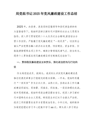 局党组书记2025年党风廉政建设工作总结2025年,在县委、县政府的坚强领导和县纪委监委的有力监督指导下,我始终坚持以新时代中国特色社会主义思想为指导,深入学习贯彻党的二十大及历次全会精神,紧密结合分管工作实际,严格履行党风廉政建设“一岗双责”,切实将全面从严治党要求融入经济社会发展、项目建设、资金争取、价格能源管理等各项工作中,确保分管领域风清气正、担当有为。现将个人贯彻落实党风廉政建设责任制情况总结如下:一、贯彻落实廉政建设主体责任,强化政治担当与行动自觉作为局党组成员、副局长,我深刻认识到党风廉政建设是推动发展改革事业行稳致远的根本保障。一年来,我始终将履行“一岗双责”作为分内之责、当然...