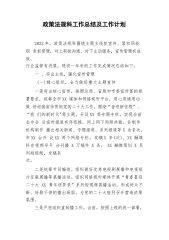 政策法规科工作总结及工作计划2022年,政策法规科围绕主题主线抓宣传、紧扣职能职责抓管理,对上积极沟通、对下主动服务,宣传管理有成效、行业监管有进展,现将一年来的工作完成情况总结如下:一、突出主线,强化宣传管理(一)精心组织,全力做好重大主题宣传一是突出核心宣传。按照总局、省局和市委宣传部的部署要求,统筹全市XX媒体和网络视听平台,用心用情用功做好迎接宣传贯彻党的二十大工作。围绕“奋进新征程”、“我们的新时代"等主题,开设XX等专题专栏,实现会前会中会后宣传报道有序衔接,网上网下同频共振。各制作机构制作播出相关新闻、专题报道、系列报道等X余条次,市XX台开设XX两个网络专栏,发稿X条(次),X...