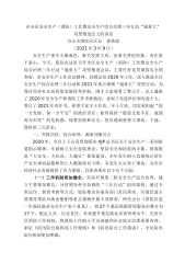 在全区安全生产(消防)工作暨安全生产综合治理三年行动“遏重大”攻坚推进会上的讲话舟山市普陀区区长徐炜波(2021年3年9日)安全生产事关小康成色,事关发展大局,也事关普陀形象,责任重于泰山。今天,我们在这里召开全区安全生产(消防)工作暨安全生产综合治理三年行动“遏重大”攻坚推进会议,主要任务是贯彻落实全国和省、市安全生产工作会议精神,回顾总结2020年工作,深入推进全区安全生产综合治理三年行动和2021年重点领域“遏重大”攻坚行动,为我区经济社会高质量发展保驾护航。刚才大家观看了警示片,会上通报了2020年安全生产和消防工作考核情况,表彰了先进单位和先进个人,签订了2021年责任书,希望大家守...