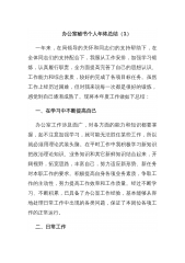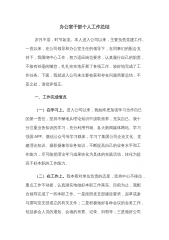 办公室工作人员个人总结入职以来,在领导的帮助和同事的支持下,紧紧围绕中心工作,充分发挥岗位职能,不断改进工作方法,提高工作效率,以“立足服务、团结同志、认真学习、扎实工作”为准则,始终坚持高标准、严要求,协助领导和同事做了大量辅助性工作。下面我对自己入职以来的主要工作情况总结如下:一、不断加强政治理论学习,努力提高个人业务素养自觉加强政治理论学习,积极参加组织活动,认真学习十九大和十九届XX中全会精神,坚持以党的最新理论成果武装头脑,努力学习法律法规,模范遵守各项规章制度,为做好本职工作打下坚实的理论基础。能够按照岗位廉政风险点防范承诺,牢记服务的宗旨,严守工作纪律和组织纪律。主动学习,不断提...