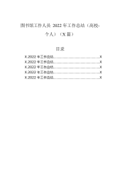图书馆工作人员2022年工作总结(高校-个人)(X篇)目录X.2022年工作总结.........................................................XX.2022年工作总结.........................................................XX.2022年工作总结.........................................................XX.2022年工作总结........................................................