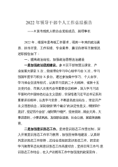 2022年领导干部个人工作总结报告——X某市残联党组成员、副理事长2022年,在市委、市政府和残联党组、理事会的正确领导下,在同志们的支持配合下,我认真履职,勤奋工作,取得了一定的成绩。现就有关情况述职如下:一、述德一年来,能认真学习习近平系列讲话和党的二十大精神,思想上政治上行动上同以习近平同志为核心的党中央保持高度一致,拥护“两个确立”,做到“两个维护”,“四个意识”坚定。忠于职守,秉公用权,求真务实,担当作为。严守纪律,作风正派,情趣健康,品行端正。家庭和睦,家风良好。全年参加集中培训X次、中心组学习X次、交流发言X次,年度学习强国X分。二、述职根据党组分工,我协助残联党组书记、理事长分...