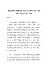 在主题教育读书班暨党委(党组)理论学习中心组9月份集中学习研讨会上的发言提纲同志们:根据会议安排,会前我通过集中观看、集体研学、个人自学等多种方式认真学习党的XX大报告、党章、《习近平著作选读》《习近平新时代中国特色社会主义思想专题摘编》等,坚持把自己和工作摆进去,深学细悟。当前,面对高质量发展的新时代新问题新方位,我们必须认真总结和运用好这次读书班成果,将学习中激发出的热情转化为勇于攻坚克难、善于担当作为的强大动力,团结带领全XXXX广大党员干部群众拧成一股绳、心往一处想、劲往一处使,推动习近平新时代中国特色社会主义思想和党中央决策部署在XXX大地不折不扣落细落实,把“XXX”发展战略的宏伟...