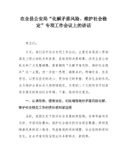 在全县公安局“化解矛盾风险、维护社会稳定”专项工作会议上的讲话
