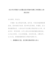 在全市文明委扩大会暨全国文明城市创建工作部署会上的表态发言 各位领导,同志们:开展新一轮文明城市创建,是市委、市政府的重要部署安排,是护航经济发展、提升群众获得感、幸福感、安全感的重要途径,公安机关作为创建文明城市的主力军,使命所系、职责所需。全市公安机关将紧紧围绕创建目标,立足业务实际,以扎实的措施、务实的态度,全警动员、全力以赴,高规格强势推进文明城市创建工作。一、紧绷落实之弦,坚定高位推动的信心决心《全国文明城市建设工作实施方案》下发后,市公安局第一时间学习研究,建立了“局领导+牵头单位+责任部门”的责任体系,成立创建领导小组。对涉及公安职责的6个测评项目,38项测评内容、91项测评标准...
