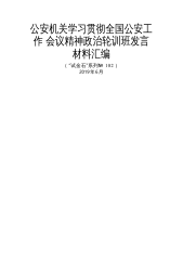 公安机关学习贯彻全国公安工作会议精神政治轮训班发言材料汇编(“试金石”系列№102)2019年6月目录1.前言............................................................12.福建省漳州市副市长、公安局局长黄华安:以新时代“漳州110”精神引领公安工作提档升级.....................23.新疆维吾尔自治区阿克苏市委常委、公安局局长赵立新:坚持加强理论武装坚决维护民族团结...............................44.河北省秦皇岛市公安局北戴河新区分局局长刘海峰:坚持守土尽责,忠实履行公安机关职责使...