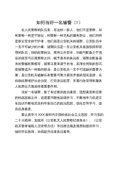 如何当好一名辅警(1)在人民警察的队伍里,有这样一群人,他们不是警察,却和警察一样坚守岗位,和警察一样无私的服务群众,他们同样是群众安全的守护者,他们就是公安机关的辅警,公安队伍中一支不可缺少的力量。辅警队伍是一支公安机关直接指挥和管理的队伍,协助民警执法、维持公共安全,功能与配备介于现在的保安与正规警察之间,赋予基本的执法权,辅警会配备基本的警械和警棍等,辅警主要来源于本地,采用合同制的形式使辅警成为一种新的职业。是公安机关一支不可或缺的重要力量,是公安机关破解任务繁重与警力紧张矛盾的现实选择,在协助民警维护社会治安、打击违法犯罪、开展行政管理和服务人民群众方面发挥着重要作用。当好一名辅警,...