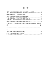 仅限学习交流,请勿抄袭和出售—1—目录关于加强和创新网格化社会治理工作的思考....................2做好我县信访工作的几点思考............................................9关于公安机关创新社会治理的思考..................................13创新城市管理体制机制的调查与思考.............................17我县社会组织发展情况的调研及思考.............................24X县流动人口基本公共卫生计生服务均等化的实践与思考................