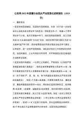 公安局2022年度履行全面从严治党责任述职报告(1919字)一、履职情况一是坚持抓思想建设,巩固筑牢思想根基。印发《关于进一步加强全区公安机关政治理论学习的意见》等制度文件×个。组建××个青年理论学习小组,每月开展集中学习;组织形势政策教育,深入开展党的XX大主题实践和“大比武”活动;组织全警开展为期五天的“XX大精神”脱产学习班;坚持每季度组织开展全警政治知识学习测试,以考促学,进一步筑牢思想根基。强化意识形态工作形势的分析研究,加强对微信、公众号等的日常管理,牢牢掌握意识形态领域的主动权和话语权。二是坚持抓作风建设,一以贯之正风肃纪。严格落实《公安部严禁违规宴请饮酒六项规定》,组织全体民警...